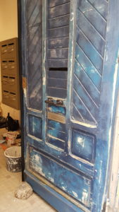 Remise en état et peinture d’une porte en bois d’entrée d’immeuble